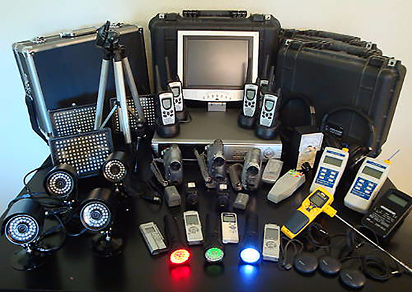 Vediamo nel dettaglio la strumentazione necessaria per effettuare una vera e propria Ricerca sul campo. Per quanto riguarda il monitoraggio ambientale è molto importante disporre di varie sonde termiche, capaci di captare la temperatura del luogo in previsione di minime variazioni termiche, non imputabili a fenomeni fisico-atmosferici. E’ molto utile poter interfacciare queste sonde a personal computer, in maniera tale da immagazzinare tutti i dati raccolti e poterli analizzare in fase di elaborazione dei dati. Oltre a questo, è importante disporre di termometri ad infrarosso, capaci di quantificare le variazioni termiche localizzate in punti specifici, che vengono definiti "Hot Spot" o “Cold Spot”; nel caso degli “Hot Spot” per esempio, si svolge un accrescimento di eccitazione molecolare grazie all'asporto di elementi finissimi presenti altrove - ove si avrà un calo di temperatura - per poi eccitar energeticamente una parte che si sta plasmando perchè faccia una data cosa, ad esempio un evento psicocinetico. E’ come se la manifestazione psicocinetica catturi energia dall’ambiente per essere utilizzata dal processo della produzione del fenomeno stesso. L’eventuale variazione termica ambientale è uno degli aspetti più importanti da monitorare, ma non è certo l’unico; è bene tenere sotto controllo anche l’umidità relativa mediante l’utilizzo di igrometri digitali, meglio se interfacciati anch’essi al PC. Oltre a questi rilievi dinamici, è bene effettuarne di statistici, ovvero misurazioni che si effettuano ad inizio sopralluogo, per avere un raffronto di parametri tra quelli raccolti in condizioni di quiete ed quelli rilevati durante lo svolgersi di fenomeni Paranormali. E’ fondamentale l’utilizzo di un fonometro, strumento capace di misurare il rumore di fondo medio, parametro utilissimo in fase di elaborazione del materiale audio raccolto e di un luxmetro, apparecchio che misura la luminosità dell’ambiente, altro dato importantissimo in fase di studio del materiale fotografico raccolto. Come accennavamo prima, la ricerca parapsicologica ha portato alla luce una stretta connessione tra fenomeni Paranormali ed elettromagnetismo. Un'onda elettromagnetica è una forma di radiazione in cui l'energia viene trasportata da campi magnetici ed elettrici che oscillano spostandosi insieme nello spazio alla velocità della luce. Pare che durante lo svolgersi di un evento Paranormale si sviluppino particolari energie elettromagnetiche – solitamente rivolte allo spettro della Bassa Frequenza - che possono essere captate da appositi ricevitori e che segnalano appunto l’effettivo prodursi di un fenomeno Paranormale. Questi rilevatori sono particolarmente costosi, soprattutto se la loro precisione di acquisizione è buona. Solitamente esprimono la potenza di campo elettromagnetico in microTesla o MilliGauss; alcuni hanno un segnalatore acustico capace di avvisare il Ricercatore dell’improvvisa lettura e altri possono essere interfacciati al personal computer. Sarebbe ottimal disporre di rilevatori che possano captare onde di varia frequenza: quelle geo-magnetiche - molto deboli e rilevabili tramite apparecchi davvero costosi - quelle in bassa frequenza - da 50 a 300 hertz - e quelle in alta e radio frequenza – fino a centinaia di megaherzt. Tra le anomalie ambientali che sorgono in corrispondenza di fenomeni apparizionali si possono anche riscontrare sbalzi nella naturale presenza di radiazioni ionizzanti e dunque si può riscontrare un incremento della radioattività ambientale; per monitorare il parametro in questione il Ricercatore utilizza contatori Geiger e altri strumenti in grado di leggere il grado di radioattività del luogo in esame.
